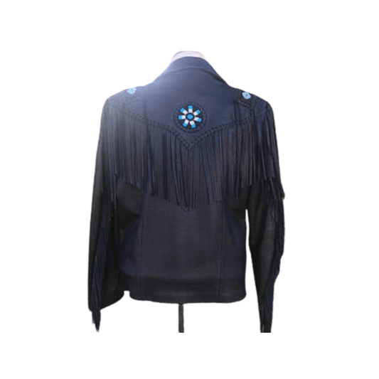 Black Fringe Beaded Leather Jacket Cowboy Jacket For Mens LWJ3520