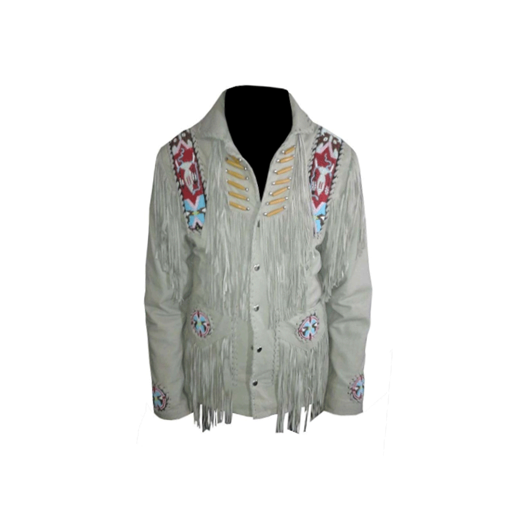 Western Beige Fringe Beaded Suede Leather Jacket Cowboy Jacket LWJ5150
