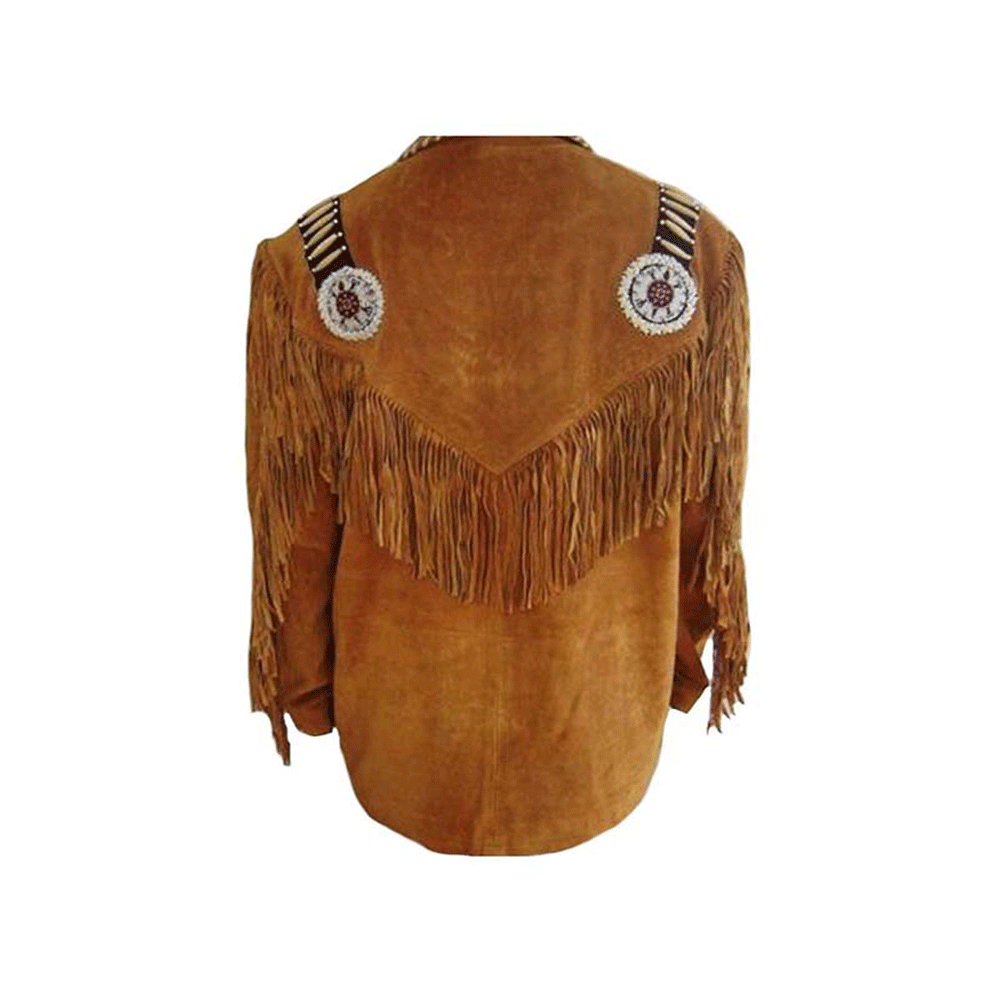 Western Brown Suede Leather Fringe Beaded Jacket Cowboy Jacket LWJ1880