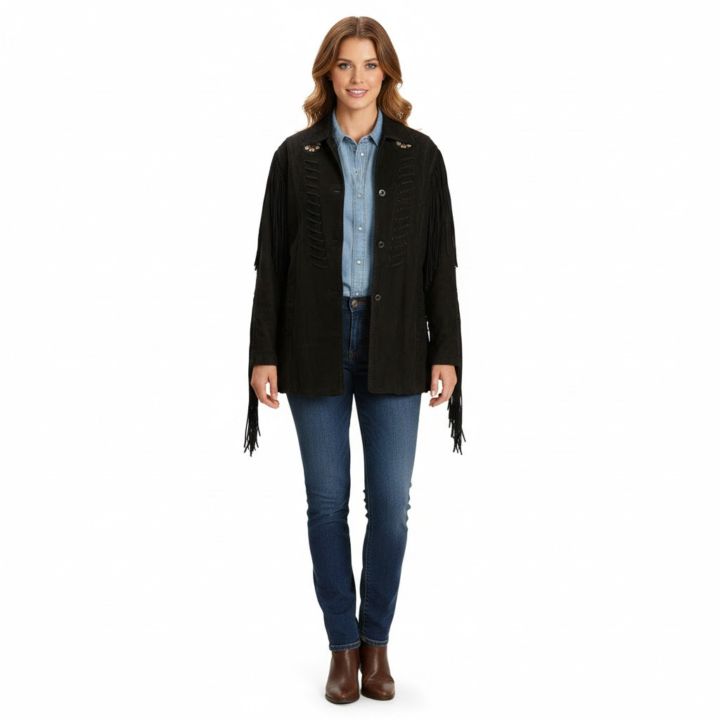 Whether you're heading to a country music festival, rodeo, or just embracing your cowgirl aesthetic, this western fringe jacket brings bold attitude and authenticity to your wardrobe.